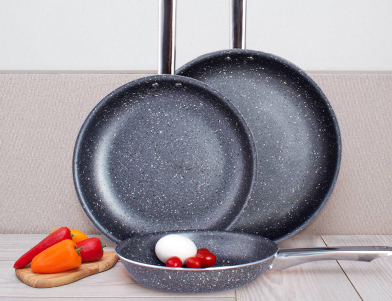 Совет: если есть возможность, то приобретайте посуду с 5-слойным мраморным покрытием и дном толщиной более 6 мм. Периодически смазывайте чистую сковороду маслом, а затем вытирайте его салфеткой (прокаливать не нужно).