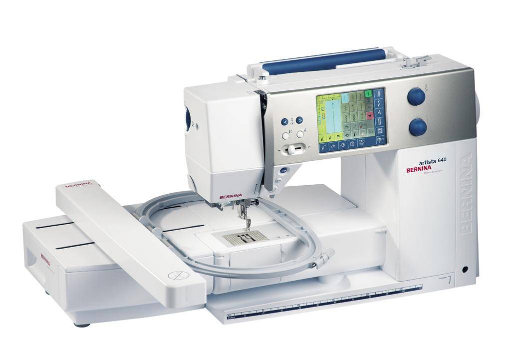 Bernina В 350. Выполняет 85 операций. Подходит для работы с кожей и толстыми тканями. Оснащена дисплеем, облегчающим регулирование настроек. В комплектации приставной столик.