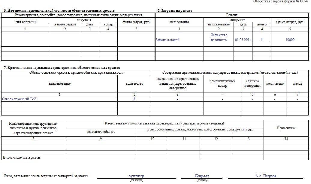 На обратной стороне карты описываются изменения, которые происходят с объектом в ходе эксплуатации.