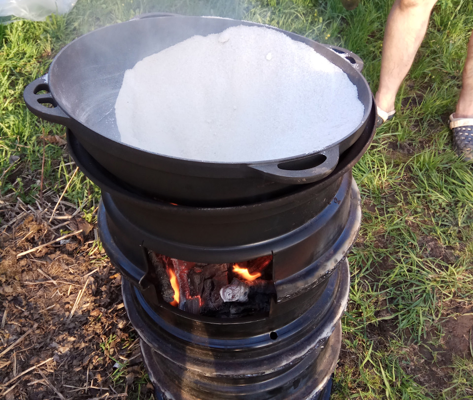 - Максимум 3 часа прокаливается солью. Периодически её нужно помешивать. За 3 часа в соль проникнут все излишки влаги и опасные элементы промышленной смазки.
