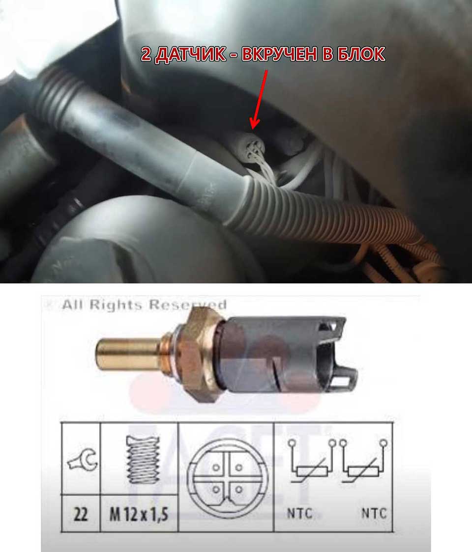 Датчик температуры ОЖ передает данные температуры жидкости (антифриза, тосола или воды) в электронный блок управления (ЭБУ). А температуру жидкости, которую водитель видит на приборной панели, передает другой датчик, тоже температурный.
