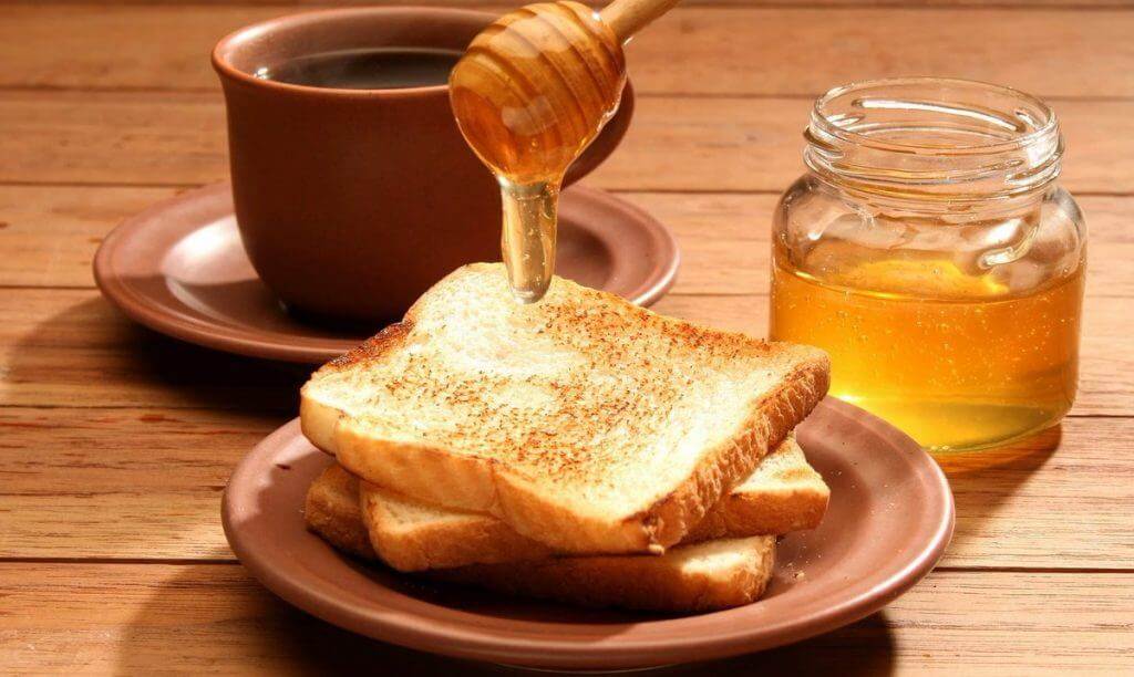 Выложить небольшое количество состава в блюдце. Сверху положить небольшой кусочек хлеба, таким образом, чтобы хлебобулочное изделие касалось всей своей плоскостью жидкой или уже засахарившейся консистенции. Оставить все это на некоторое время.