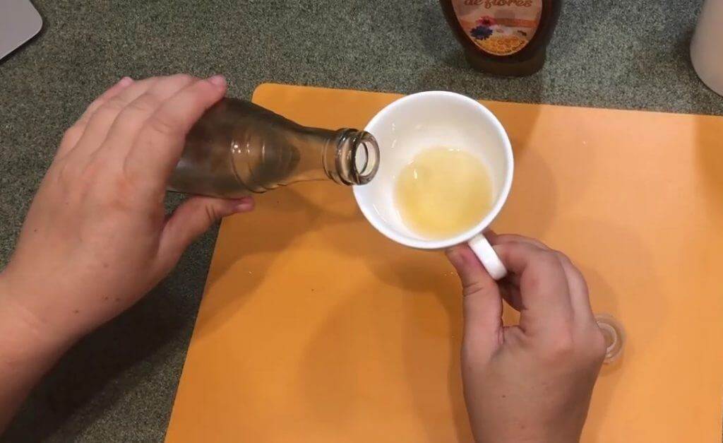 Итак, нужно всего лишь растворить небольшое количество субстанции из сот (не более 1 столовой ложки) в стакане слегка теплой воды до полной однородности. Потом налить туда 1 столовую ложку уксуса.