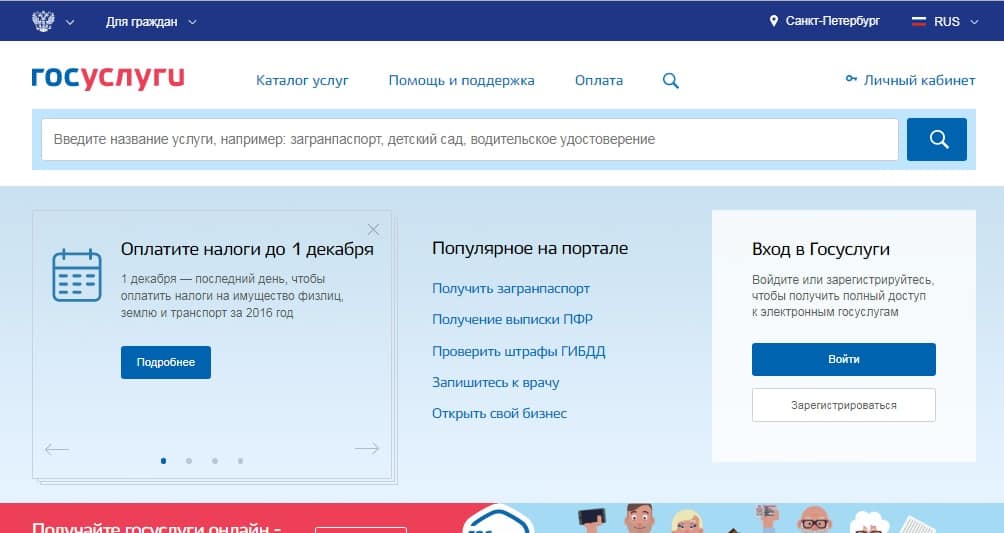 - Если вы авторизованный пользователь, заходим на сайт Госуслуги.