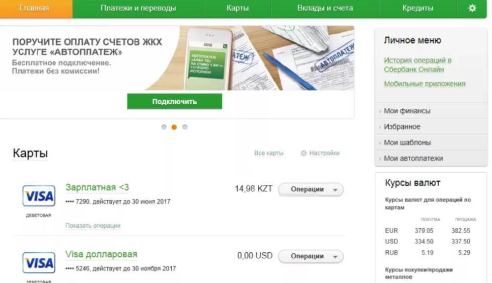 Этапы получения информации об остатке денег на карте через систему Сбербанк онлайн: