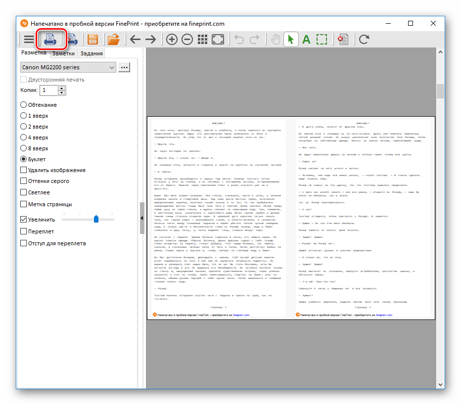 Существует сторонний софт, разрабатываемый специально для работы с документами, создания брошюр и другой печатной продукции. Как правило, функциональность такого ПО значительно шире, поскольку сосредоточена конкретно на этой задаче. Давайте рассмотрим процесс подготовки и печати книги в FinePrint.