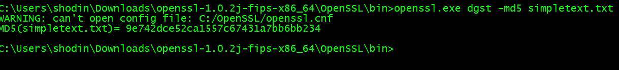 Теперь нам доступны почти все возможности пакета openssl в Windows. Например, вычислить хеш, как делали в предыдущих примерах для Linux (не забываем про абсолютные и относительные пути к файлам):