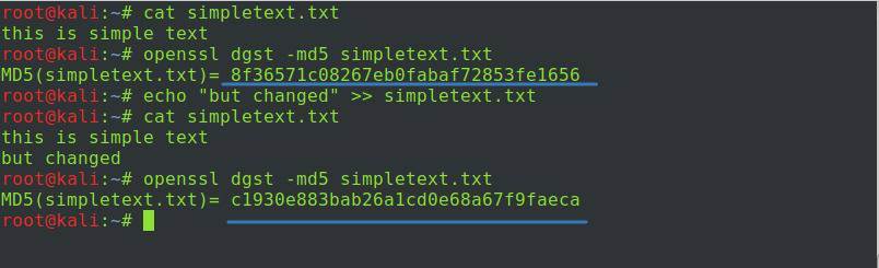 Обратите внимание: мы добавили в файл новую строку («but changed»), вычислили заново хеш от файла, и он стал другим. То есть при любом изменении содержимого файла хеш-функция не останется прежней