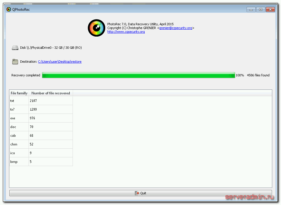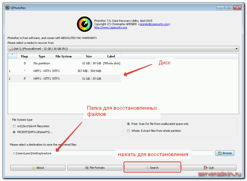 К сожалению, есть только англоязычная версия QPhotoRec, но разобраться в настройках совсем несложно, интерфейс интуитивно понятен.