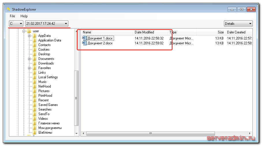 Если у вас она включена, то запускайте программу ShadowExplorer, которую я предлагал скачать чуть выше. Распаковывайте из архива и запускайте. Нас встречает главное окно программы. В левом верхнем углу можно выбрать диск и дату резервной копии. Скорее всего у вас их будет несколько, нужно выбрать необходимую. Чтобы восстановить как можно больше файлов, проверьте все даты на наличие нужных файлов.