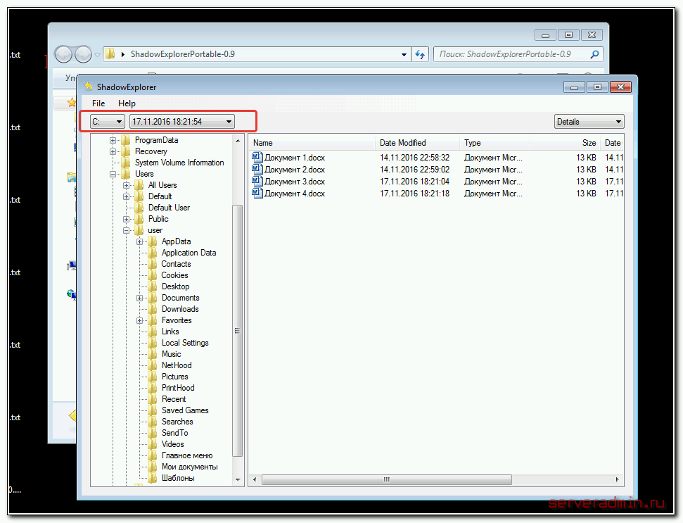 - Запустите ShadowExplorer.