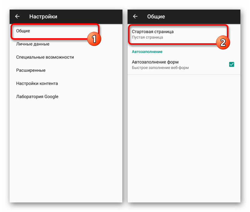 Из представленного списка зайдите в подраздел «Общие» и тапните по строке «Стартовая страница».