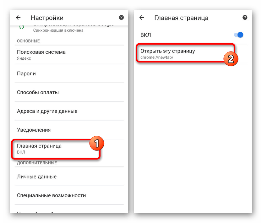 - Найти в настройках пункт «Главная страница» и нажать на него.