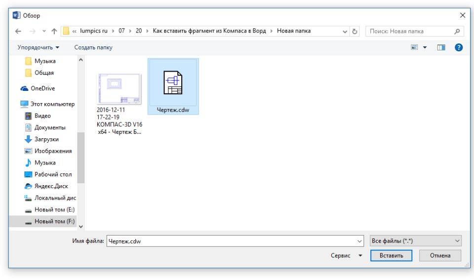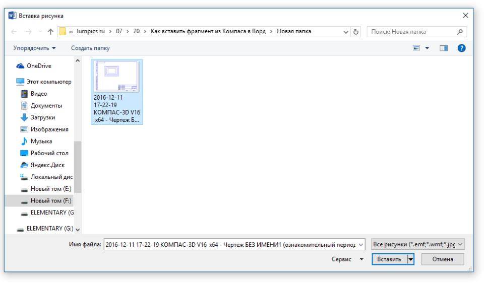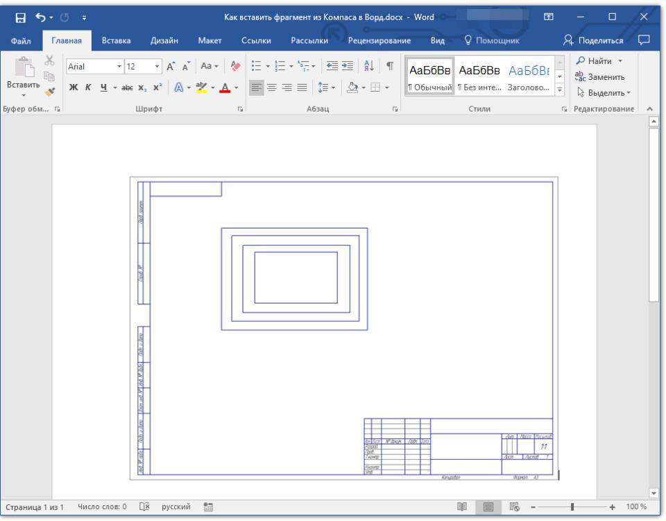 Примечание: Данный метод тоже исключает возможность редактирования вставленного объекта. То есть, вы сможете изменить его, как и любой рисунок в Word, но не сможете редактировать, как фрагмент или чертеж в Компасе.
