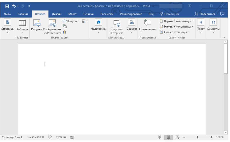 2. Откройте Ворд, кликните в том месте, куда нужно вставить объект из Компаса в виде сохраненного скриншота.