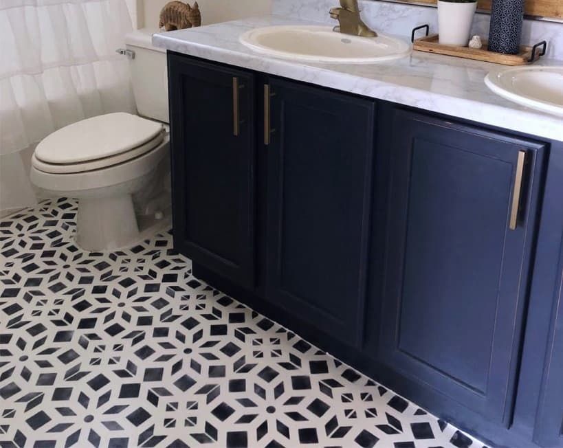 Виниловую плитку долго укладывать, поэтому лучше остановиться на виниле в рулонах или линолеуме. Оба покрытия хорошо противостоят влаге. Но винил долговечнее. Линолеум дешевле, а рисунок быстрее стирается. Оба варианта можно стелить на существующее покрытие – кафель, ламинат и т.д.
