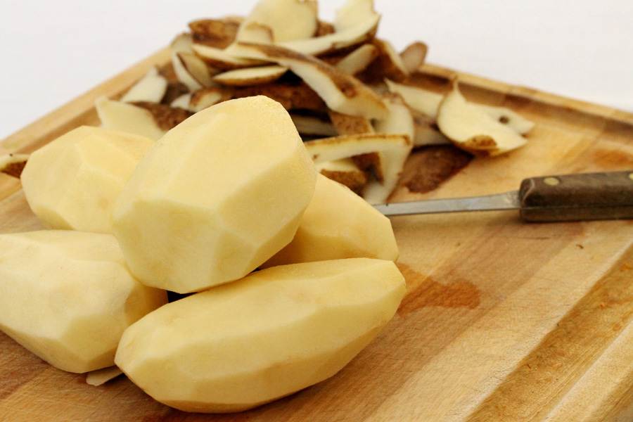 Картофель вымыть, отчистить от кожуры овощечистилкой.