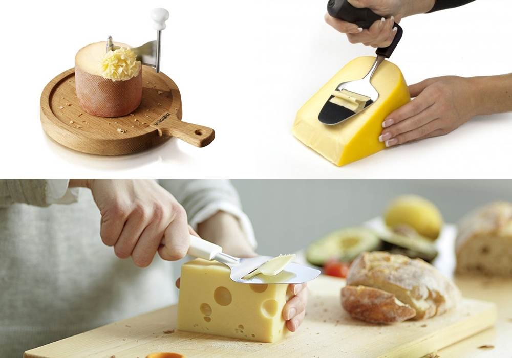 - если сырные тарелки нарезаются часто, покупают специальное устройство «рокфорезку». Она предназначается для разных сортов сыра (не только рокфора) и позволяет аккуратно нарезать даже те продукты, которые сильно крошатся;