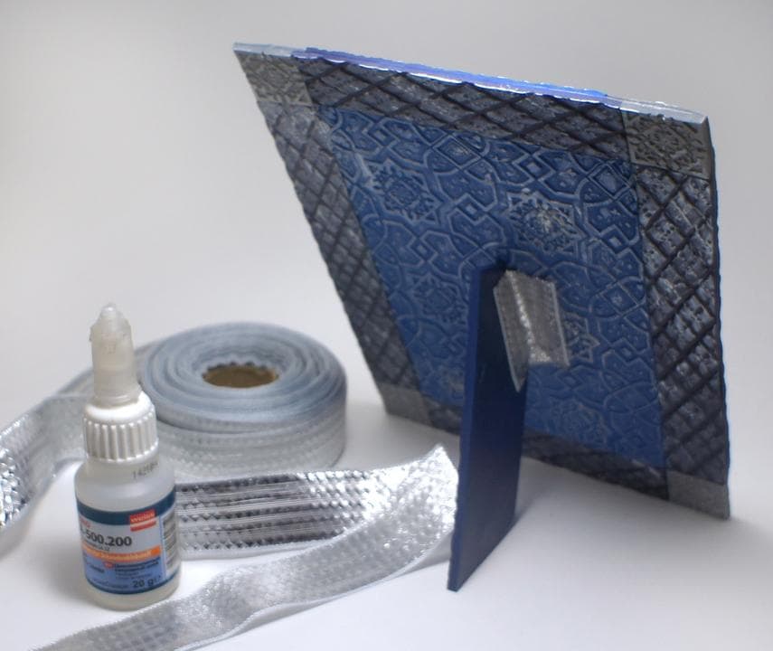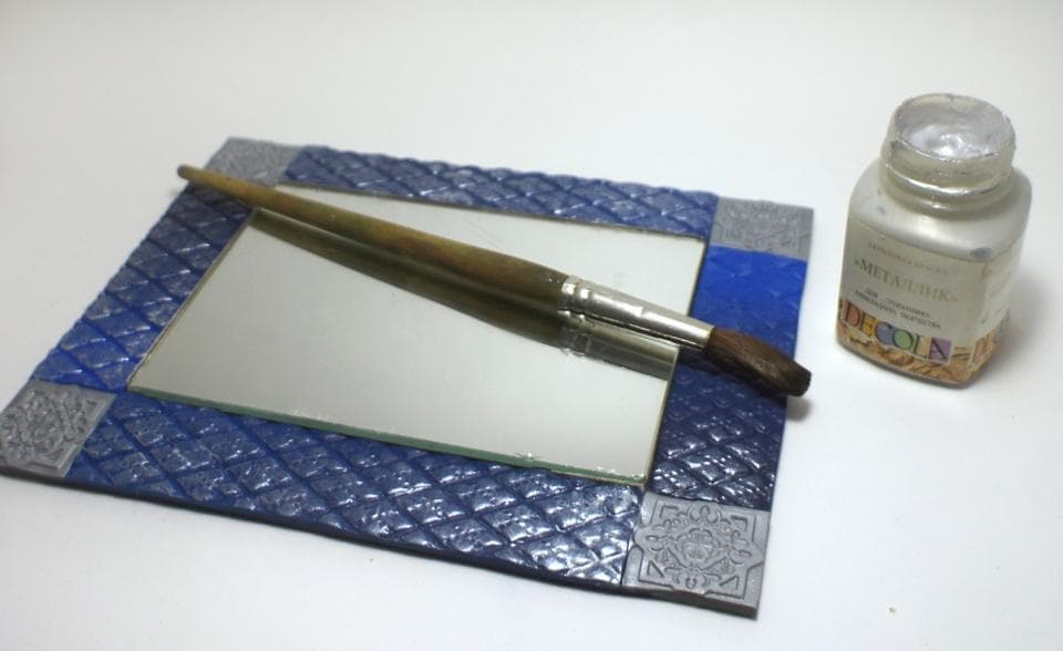Если у предмета уже есть рама, то ее можно не снимать, а придать ей новый внешний вид. Также можно купить уже готовое обрамление из дерева или пластика и украсить его по своему желанию.