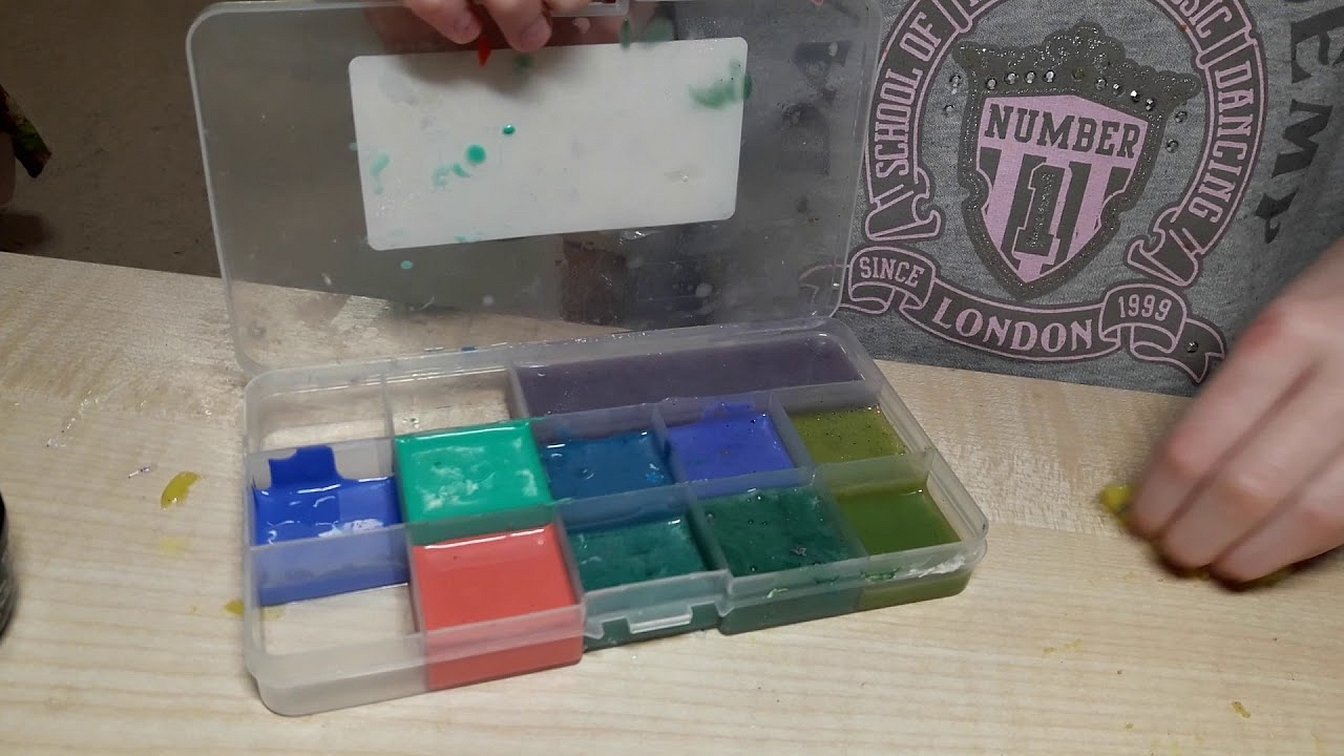 - По желанию можно придать слайму какой-нибудь оттенок с помощью пары капель красителя.