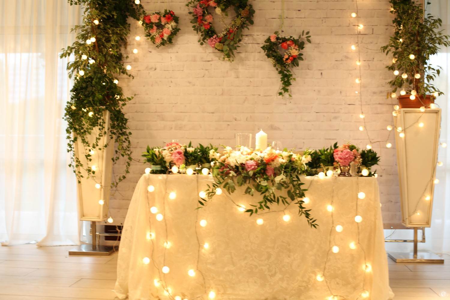 Металлопластиковый каркас – дорогое удовольствие, поэтому часто выбирают бюджетную альтернативу – делают сердце из воздушных шаров и закрепляют на специальной стойке. Для оформления необязательно обращаться к профессиональным дизайнерам. Для декора своими руками подойдут гирлянды, живые цветы и красные ленты. Элементы комбинируют между собой и органично вписывают в разнообразные стилевые направления: от рустика до гламурного шика.