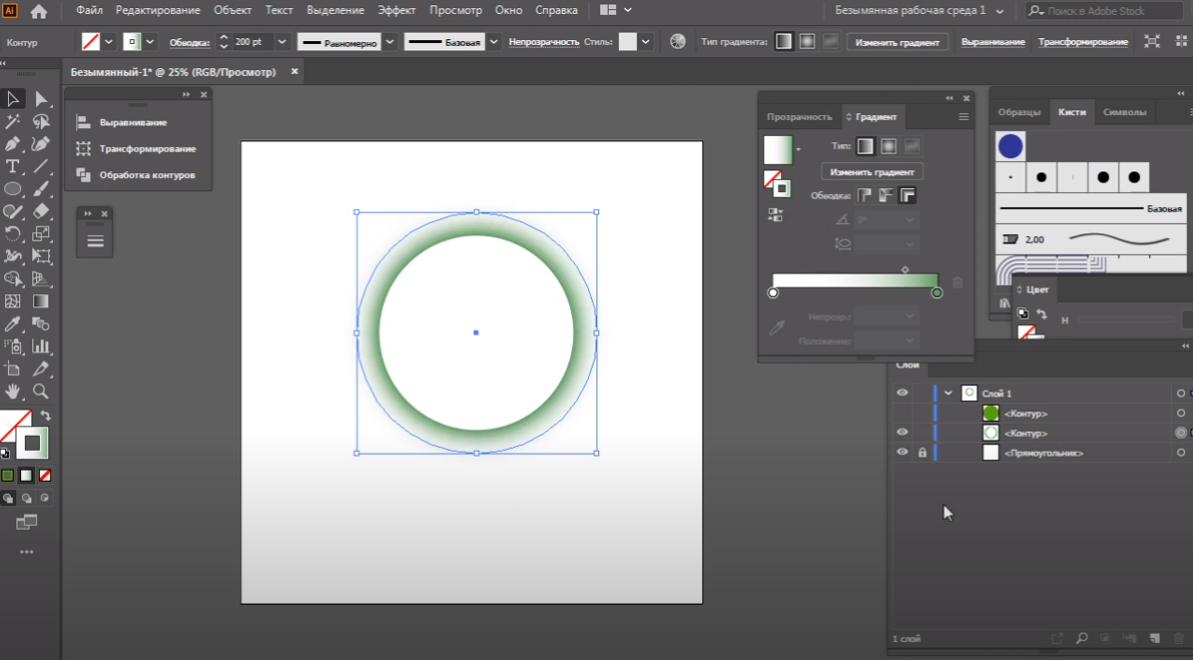Выбираем нейтральный серый цвет для обводки, устанавливаем режим смешивания Screen и уменьшаем непрозрачность в панели Transparency. ежим Screen обычно используют для создания бликов на объектах. Выбираем текстурированную кисть в панели Brushes, берем любой инструмент рисования, например Paint Brush (B), и создаем мазок по краю окружности.