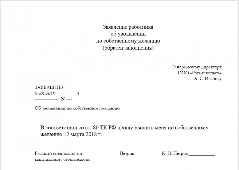 Когда инициатор ухода сам сотрудник, то в заявлении на увольнение ставится пометка «по собственному желанию». Она максимально комфортна для всех участников процесса.