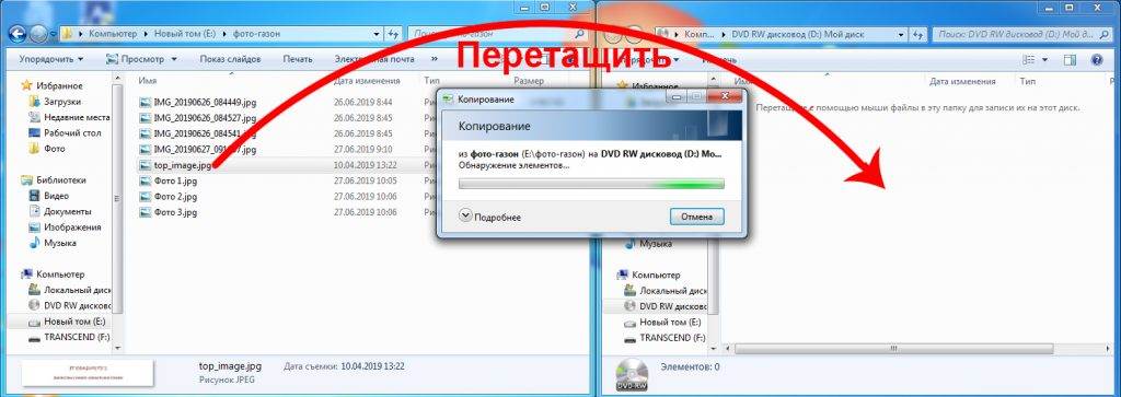 Копирование файлов на диск перетаскиванием