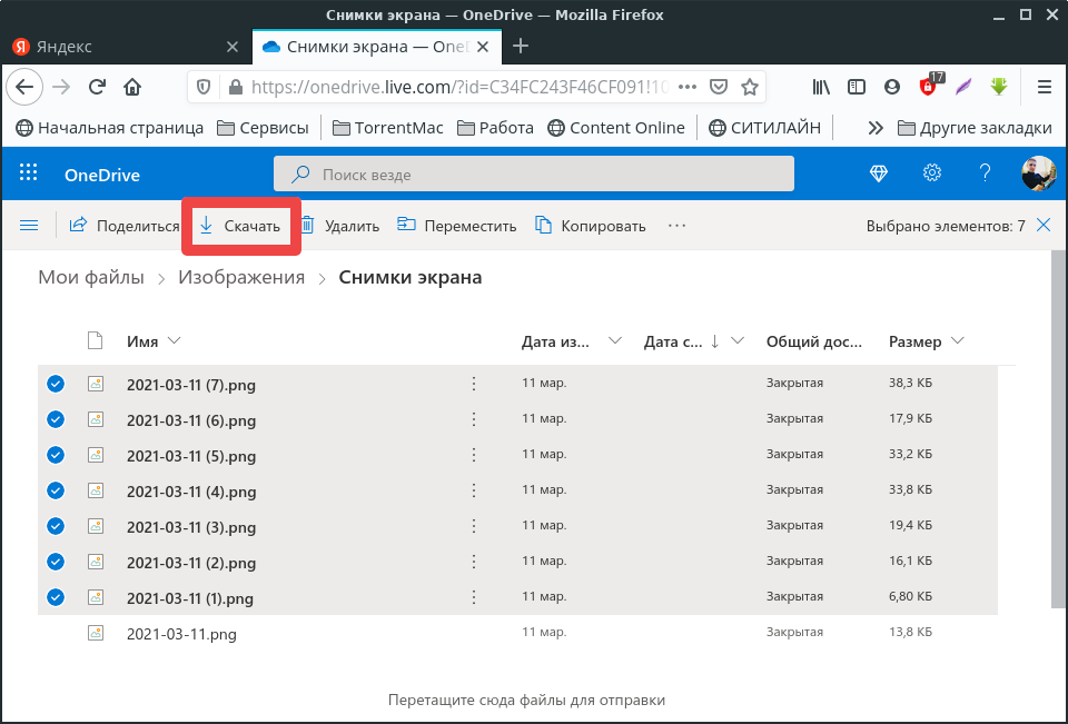 Работа с OneDrive идентична — необходимо загрузить снимки в облако через телефон, после чего на компьютере скачать их. Пошаговое руководство: