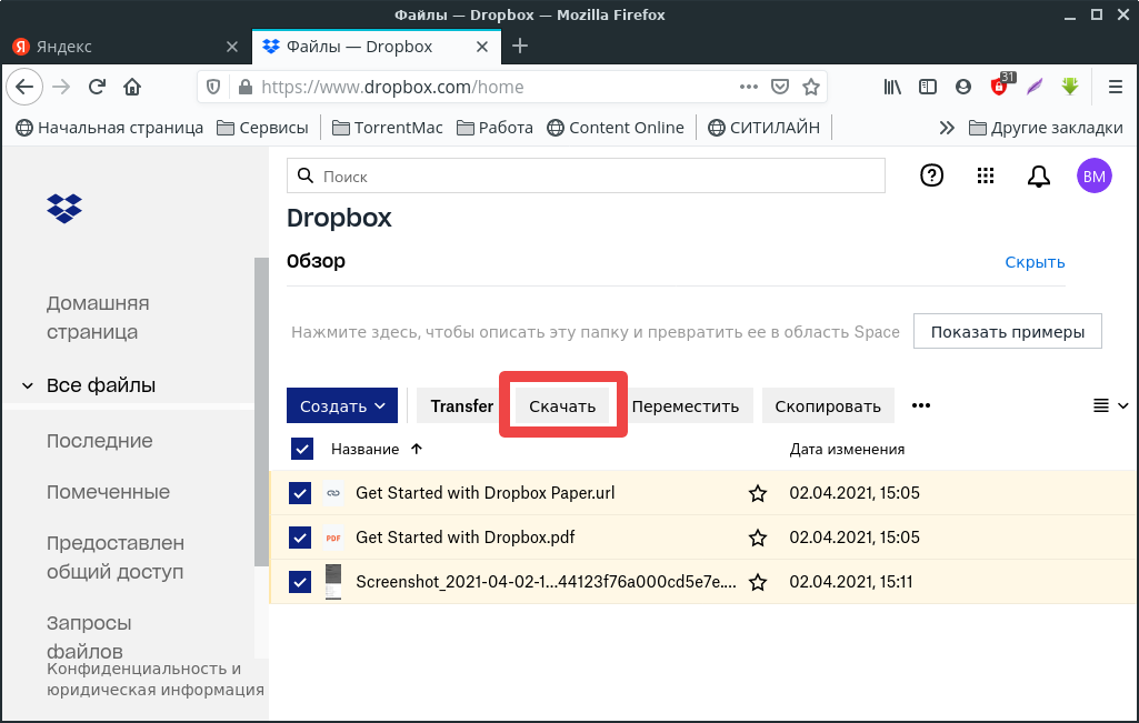 Dropbox работает по тому же принципу, что и ранее рассмотренные сервисы. Руководство по использованию: