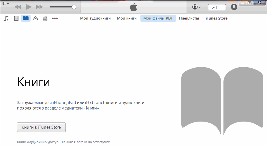 У нас слева в iTunes должен быть специальный раздел Книги. И пока он пустой.