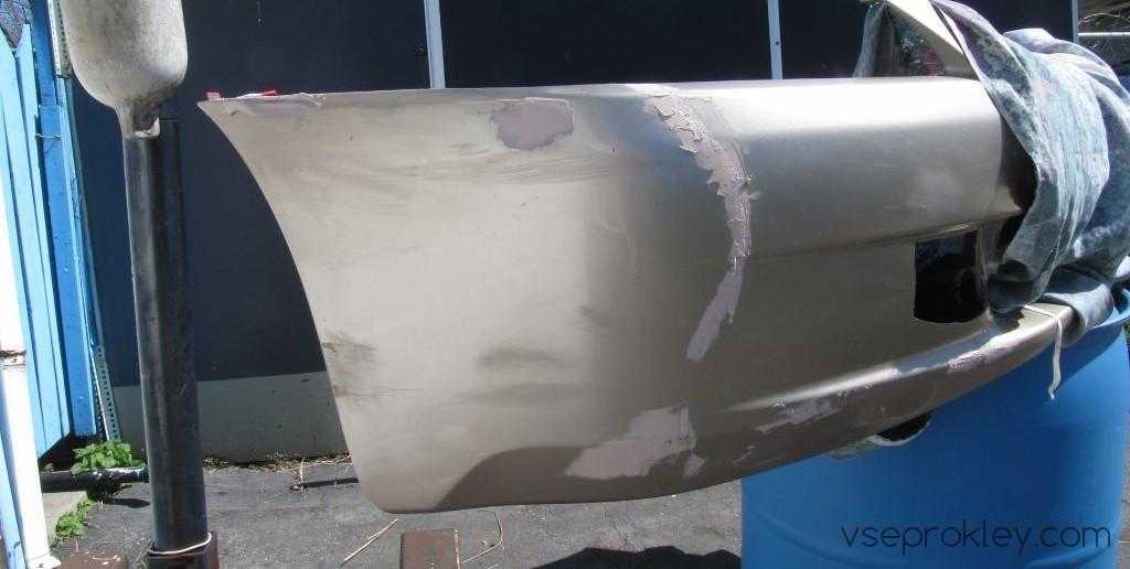 Чтобы ремонт продержался как можно дольше, бампер придется подвергнуть предварительной обработке. Деталь заранее отсоединяется.