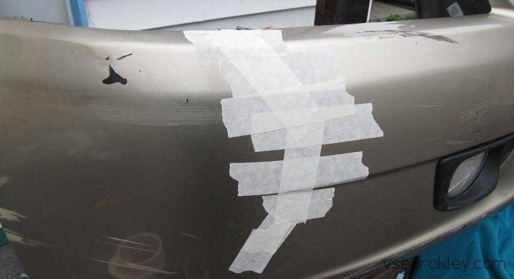 перед началом работ в бампере формируют V-образные выемки для дальнейшего размещения композитного материала.