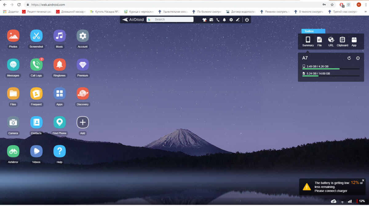 Из универсальных приложений можно выделить AirDroid. Программа позволяет управлять устройством через браузер на компьютере без подключения телефона по USB, достаточно сети Wi-Fi. Если зарегистрироваться на сервисе, то телефон и компьютер даже не должны находиться в одной сети, что очень удобно.