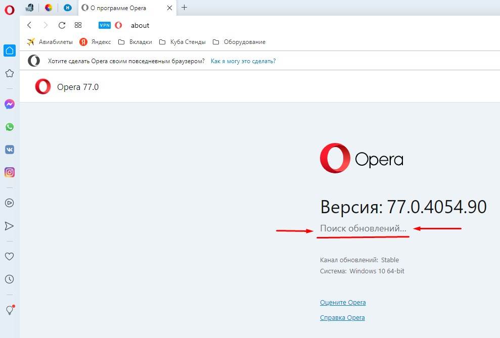 Как только вы зайдете в данный раздел опера автоматически начнет скачивать обновления.