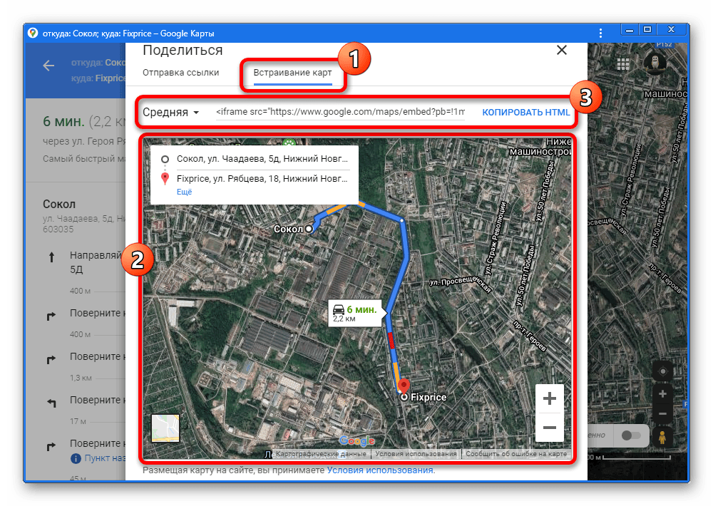 Если вы являетесь обладателем собственного сайта и располагаете доступом к исходному коду, на вкладке «Встраивание карт» можно получить код модуля Google Maps с зафиксированным маршрутом. Сама же процедура встраивания зависит от сайта.