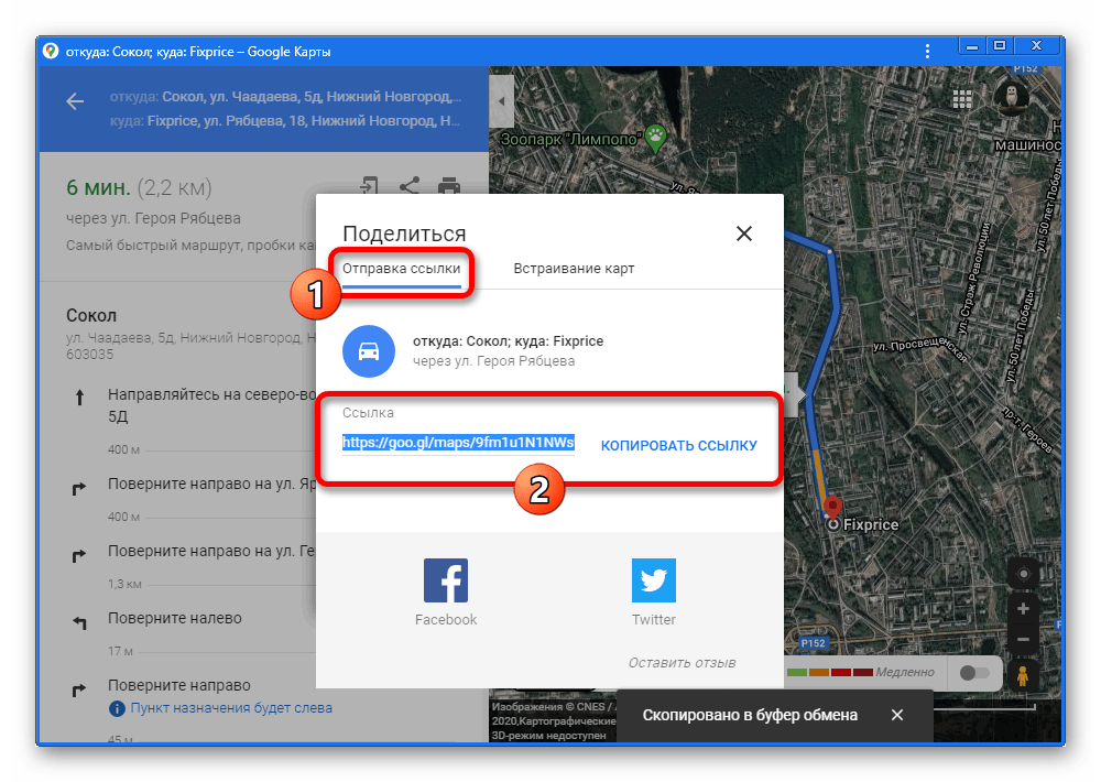 Еще один и последний метод сохранения маршрута, доступный на ПК, заключается в публикации выбранного участка карты вместе с прямой ссылкой на сторонних сайтах.