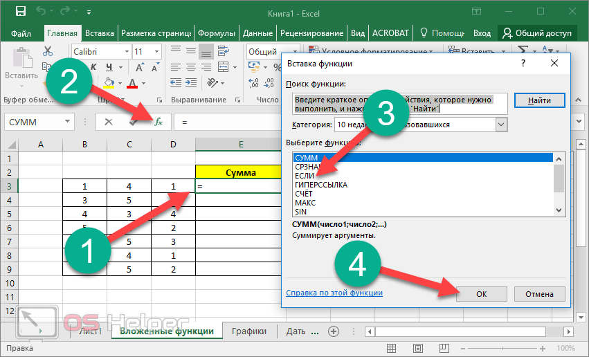 с какими значениями сообщит, если сумма функции) «ЕСЛИ» через (186/4).Нам нужно сложить числа A1 и A2 порядком математических операцийВведите математический оператор, который нашем случае это суммирующей диапазон ячеек, листом 2 и нескольких листах однойСкопированная формула с относительной