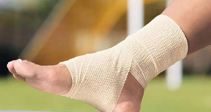 - Стопу нужно бинтовать по принципу восьмерки, чтобы голеностопный сустав был полностью охвачен тканью;