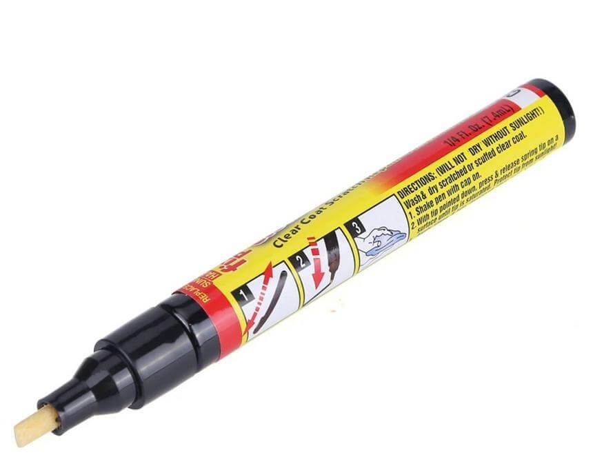 - Специальный карандаш справится с глубокими царапинами. Гель заполняет полости сколов и маскирует царапины, поверхность становится ровной. Это средство можно приобрести в специализированных автомобильных магазинах. Оригинальный карандаш стоит не дёшево. Однако только он сможет реально справиться с проблемой. Использование недорогих аналогов не поможет качественно убирать дефект.