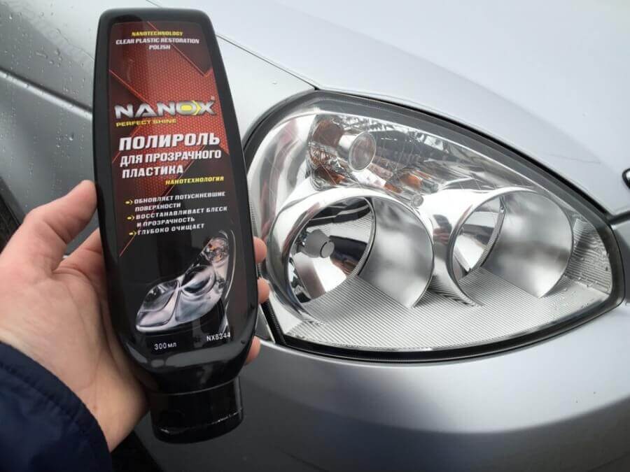 Когда нужно отполировать пластиковую поверхность не стоит отвергать применение полироли. Подобные составы выступают средством финишной обработки при необходимости получения глянцевой блестящей поверхности. В случае автомобильных фар полироль может намного повысить светопроницаемость и защитит поверхность от загрязнений в первое время после обработки. Методика применения полироли следующая: