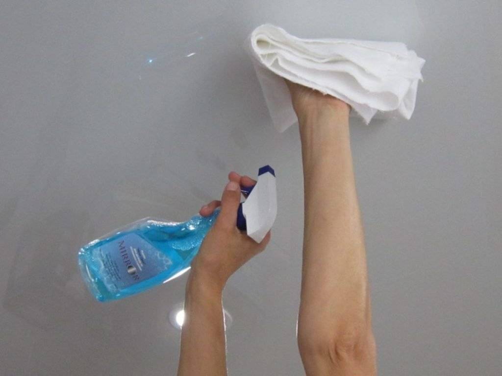 Удалив основную краску, потолок промывают вручную намоченной тряпкой или губкой до исчезновения белесых следов.