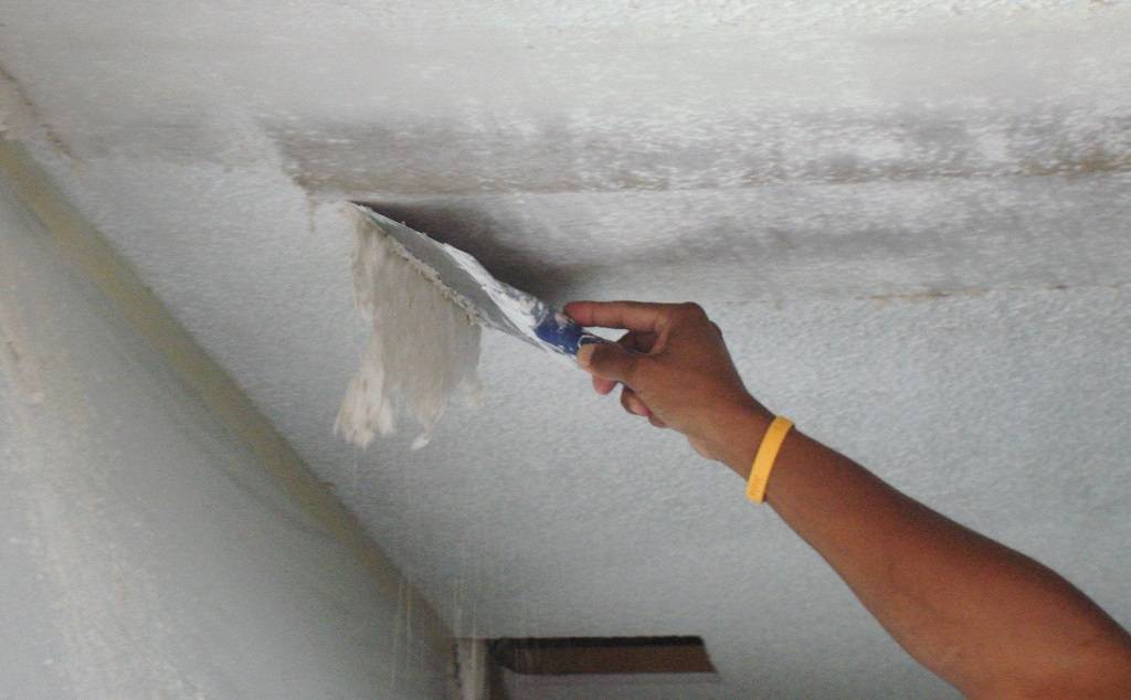 Считается, что сухой метод, когда старую побелку с потолка без намачивания счищают шпателем либо скребком, слишком уж пыльный. Но строители-отделочники придумали свой оригинальный способ, который многим нравится из-за легкости исполнения.