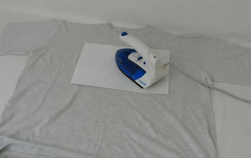 Теперь инструкция для тех, кто решил воспользоваться утюгом. Намочите полотенце или какую-нибудь ткань и положите поверх рисунка. Можете ставить на всё это нагретый утюг. Между вещью и одеждой положите пергамент. Именно на него во время глажки будет пересниматься рисунок. Наклейка из винила при воздействии температуры размягчится и снять её будет куда проще.