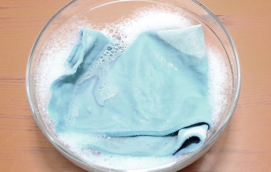 Жидкостью для посуды очищают ПВХ-пленку в ванной. Для этого 2 ст. л. моющего средства растворяют в 2 л теплой, но не горячей воды: от высоких температур покрытие деформируется.