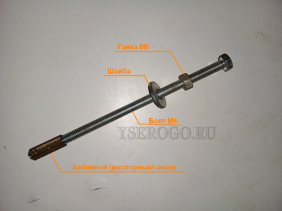 Сборный крепеж из забивного анкера более прост (понятен) в монтаже, однако также имеет недостатки. К достоинству можно отнести надежную фиксацию в бетоне при