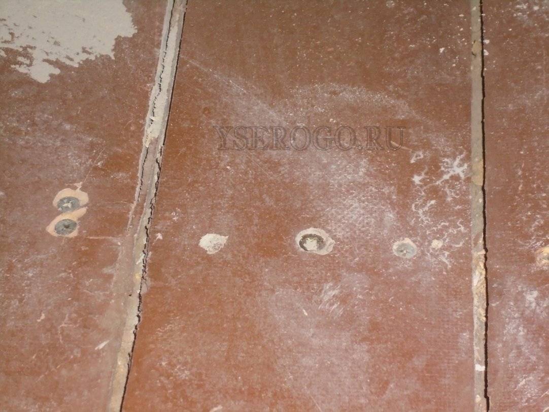 “Потаи” с гайками крепежа можно (даже нужно) заделать каким-либо герметиком, если сверху планируется линолеум. Герметик также зафиксирует, в некоторой степени, крепеж в
