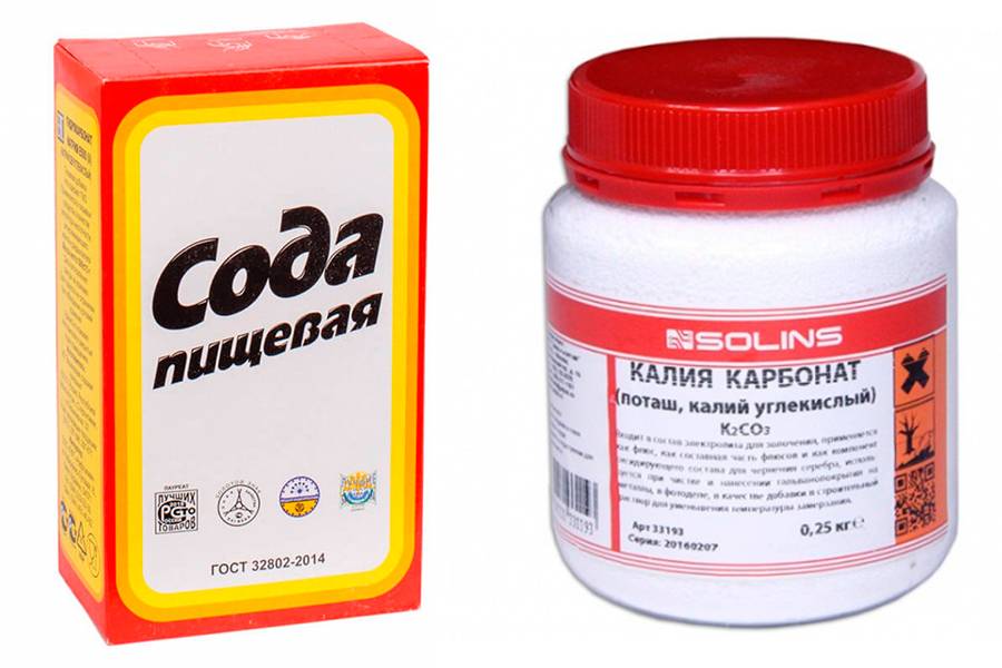 смесь соды и поташа. Их надо взять по 50 г и растворить в 1 л воды. Некоторые пользователи рекомендуют добавить 250 г ацетона. Наносят, выдерживают, вытирают тряпкой;