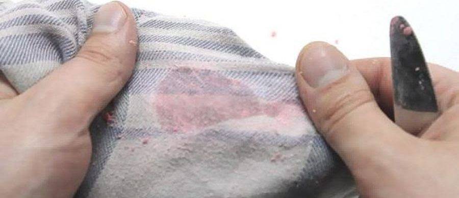 Если на одежду попал еще горячий или теплый воск, находящийся в жидком состоянии, используйте шпатель для устранения его излишков, а затем используйте следующий способ для очистки одежды: