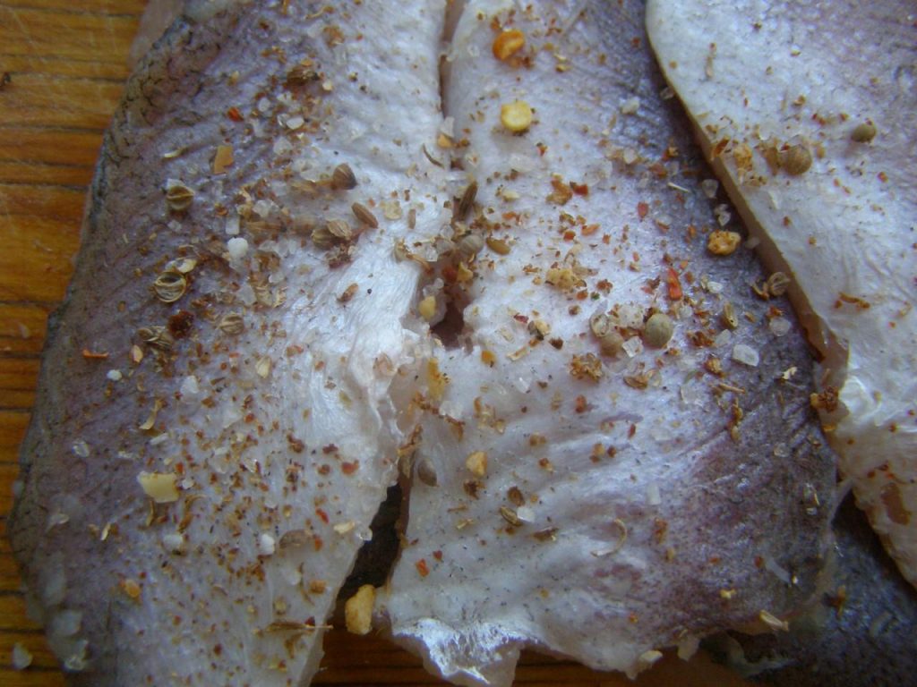 - Перед приготовлением, замочите рыбу в воде, смешанной с ложкой уксуса и лимонным соком.